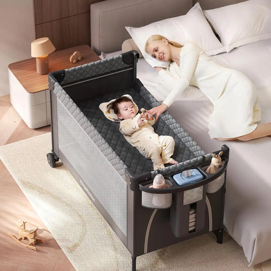 4-in-1 Baby Bassinet – Pack and Play Bedside Crib Sleeper with Diaper Changer and Mosquito Net