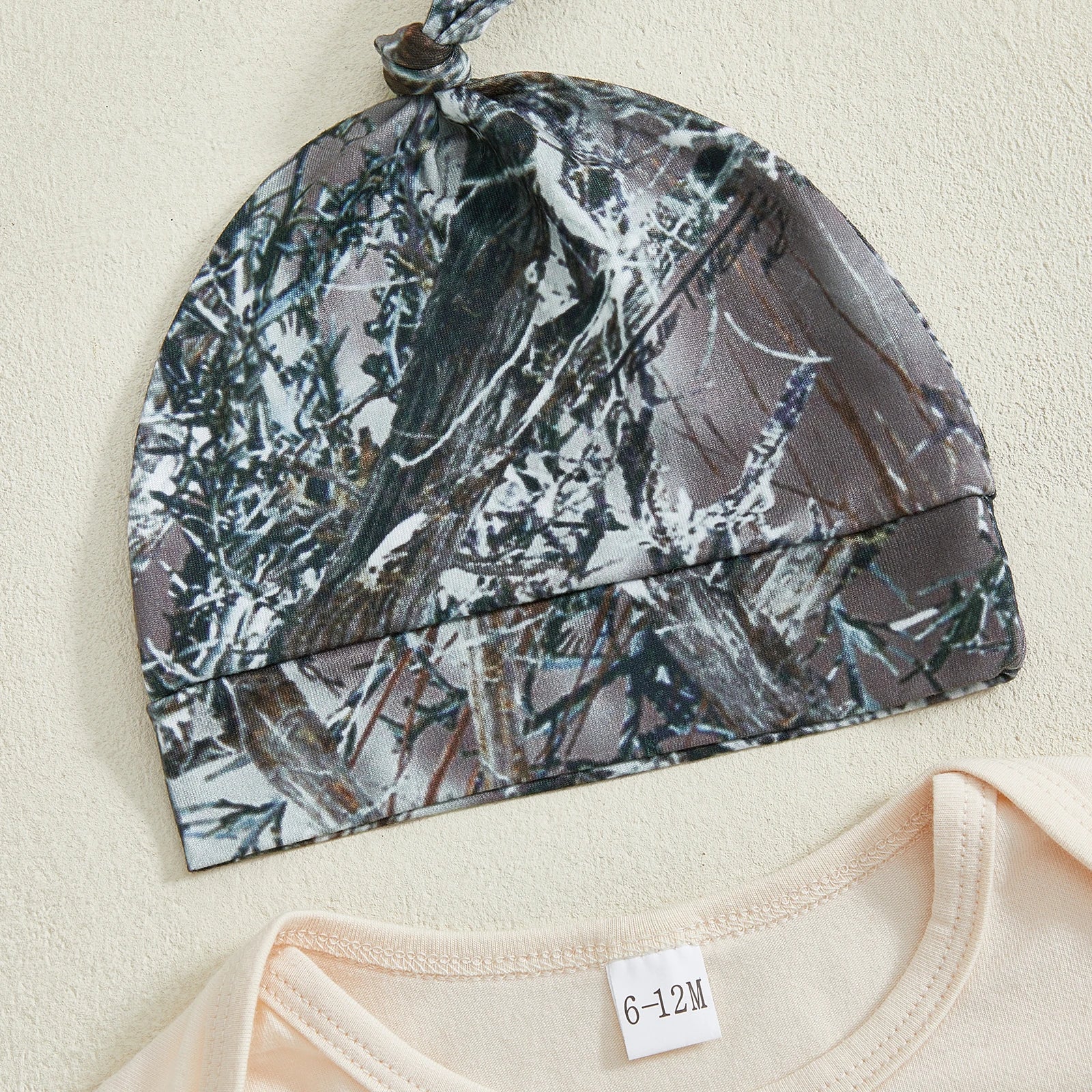 Celebrate your baby boy’s first birthday in style with this 3-piece outfit set. It includes a deer embroidery romper, printed pants, and a matching cap—perfect for birthday photos or parties. Made from soft, breathable fabric for all-day comfort.