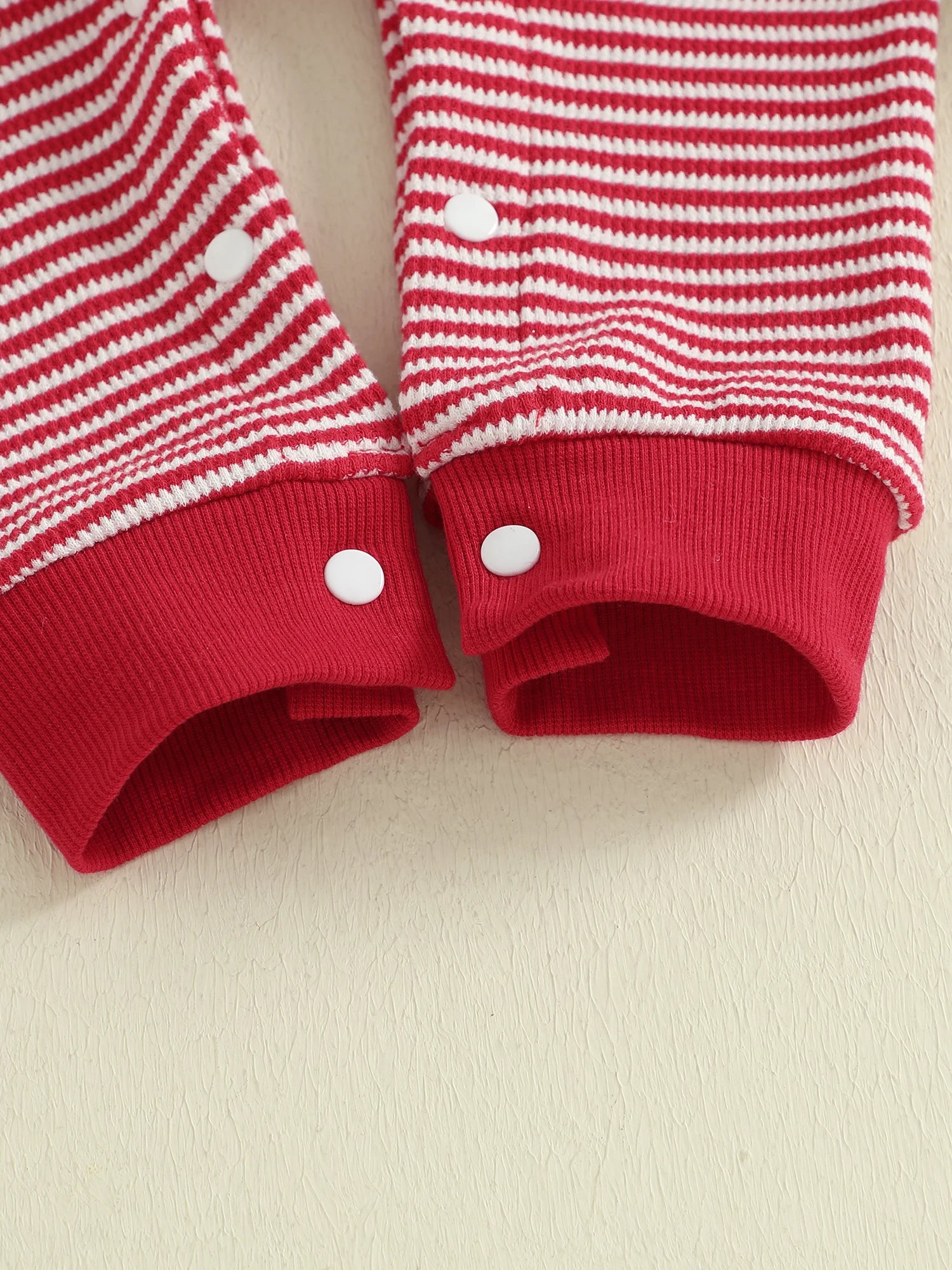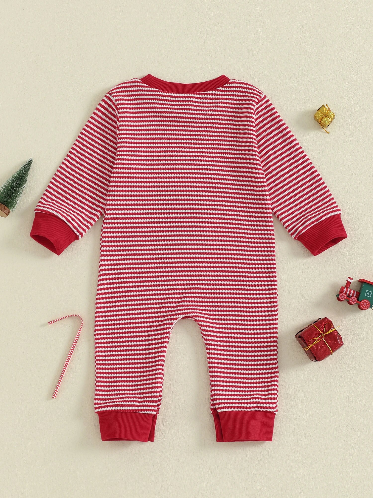 Christmas Jumpsuit – Gingerbread Man Embroidered Long Sleeve Striped Romper