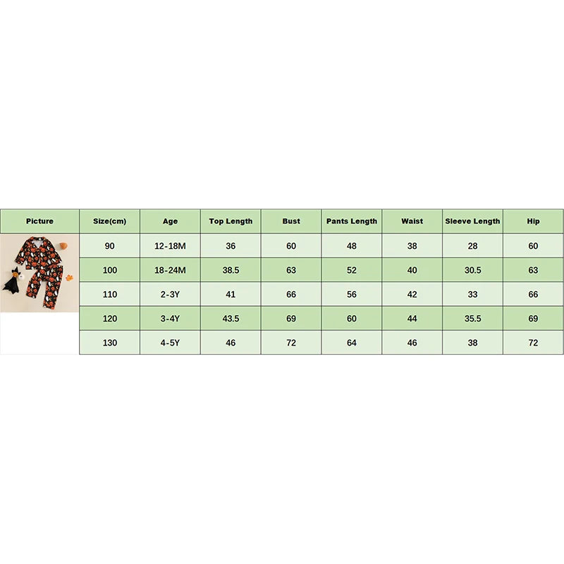 4–5Y | Top Length: 46 cm / 18.11 in | Bust: 72 cm / 28.35 in | Pants Length: 64 cm / 25.2 in