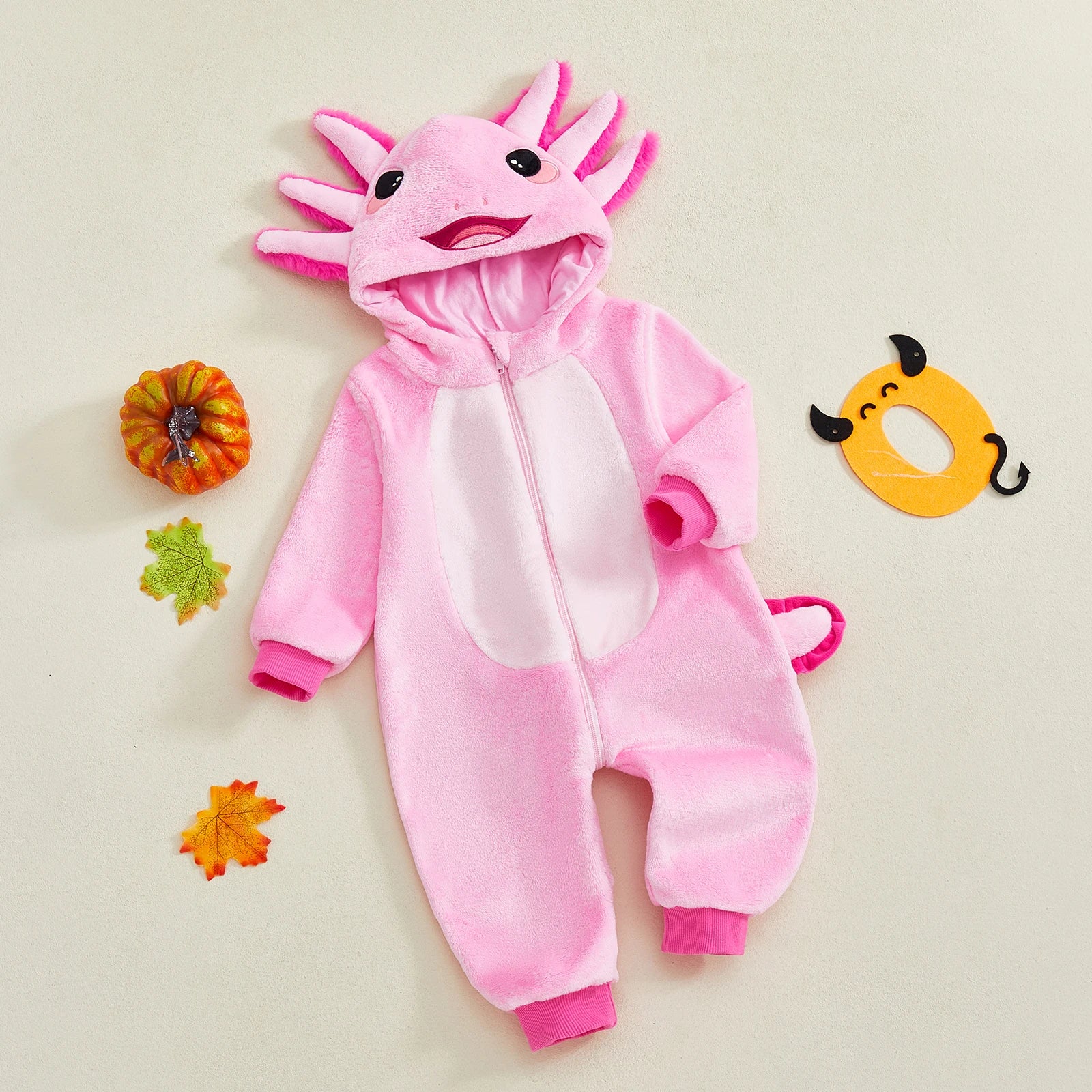 Toddler Baby Axolotl Onesie – Cute Zip-Up Hooded Costume Romper